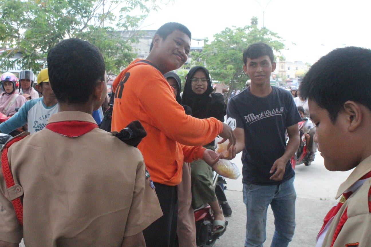 Kolaborasi Anggota OSIS dan Pramuka, Keluarga Besar SMP Negeri 10 Mandau Berbagi Takjil di Bulan Suci Ramadhan