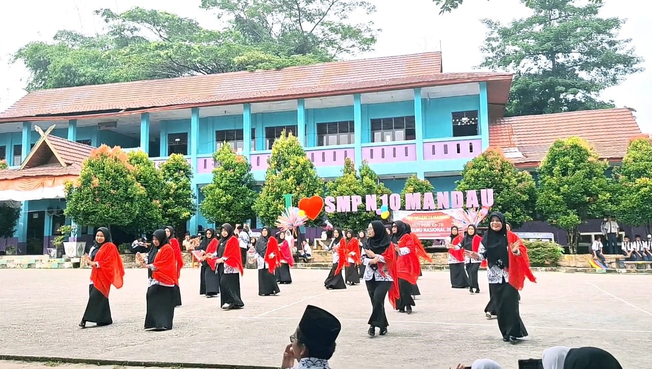 HUT PGRI dan Hari Guru Nasional, SMPN 10 Mandau Gelar Upacara Bendera dan Tari Masal