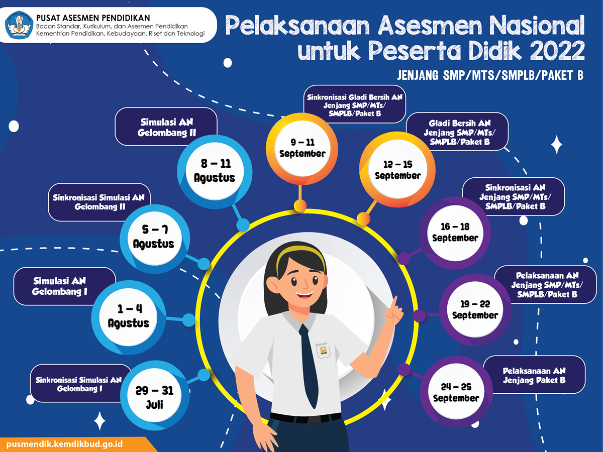 Tahun ini ANBK dilaksanakan pada tanggal 19-22 September 2022. Untuk ANBK gelombang pertama diselenggarakan mulai tanggal 19-20 September 2022 dan ANBK gelombang kedua pada tanggal 19-20 September 2022.